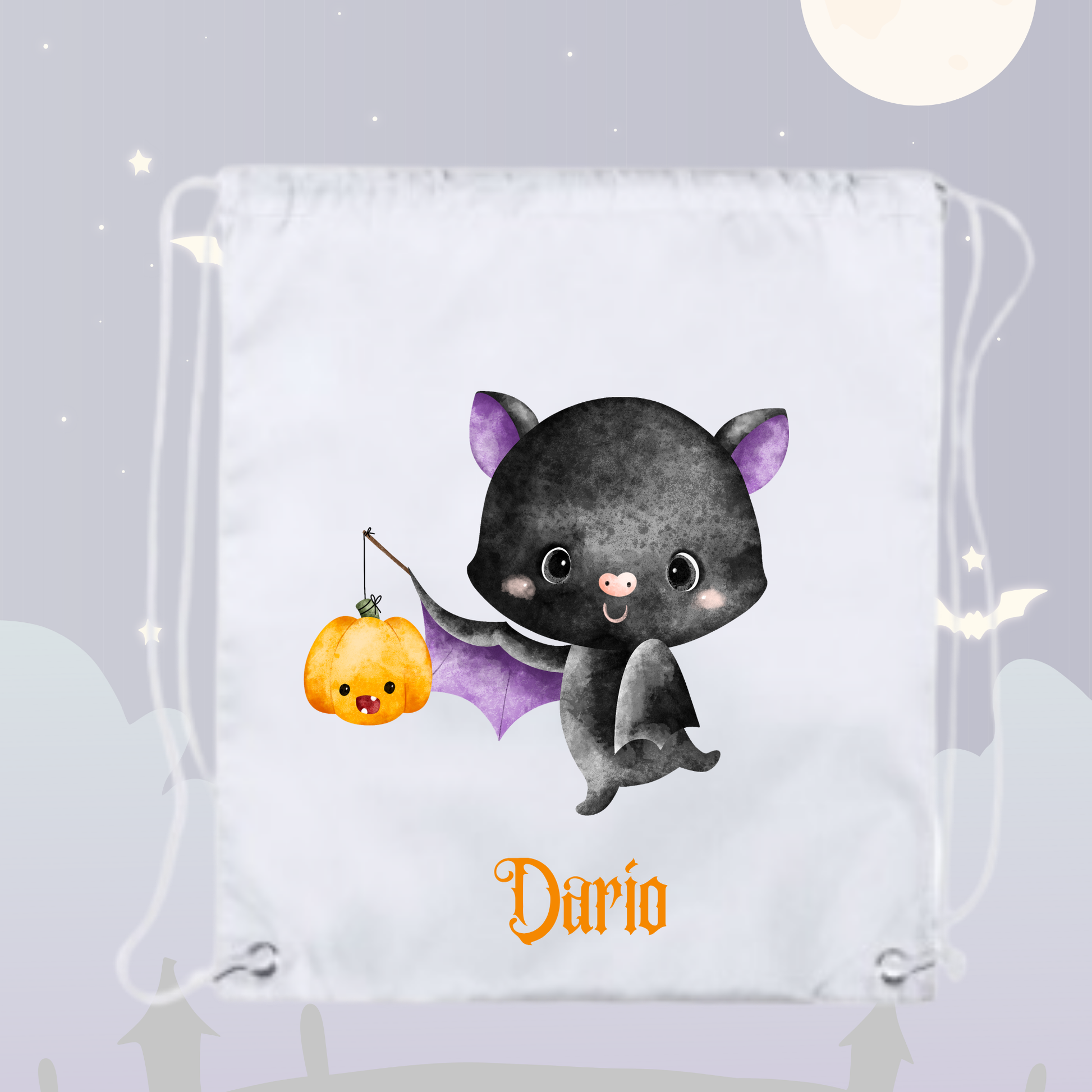 Llega Halloween y con ello la ilusión de recoger chuches para tu pequeño, y que mejor manera que hacerlo con una bolsita personalizada con su nombre.